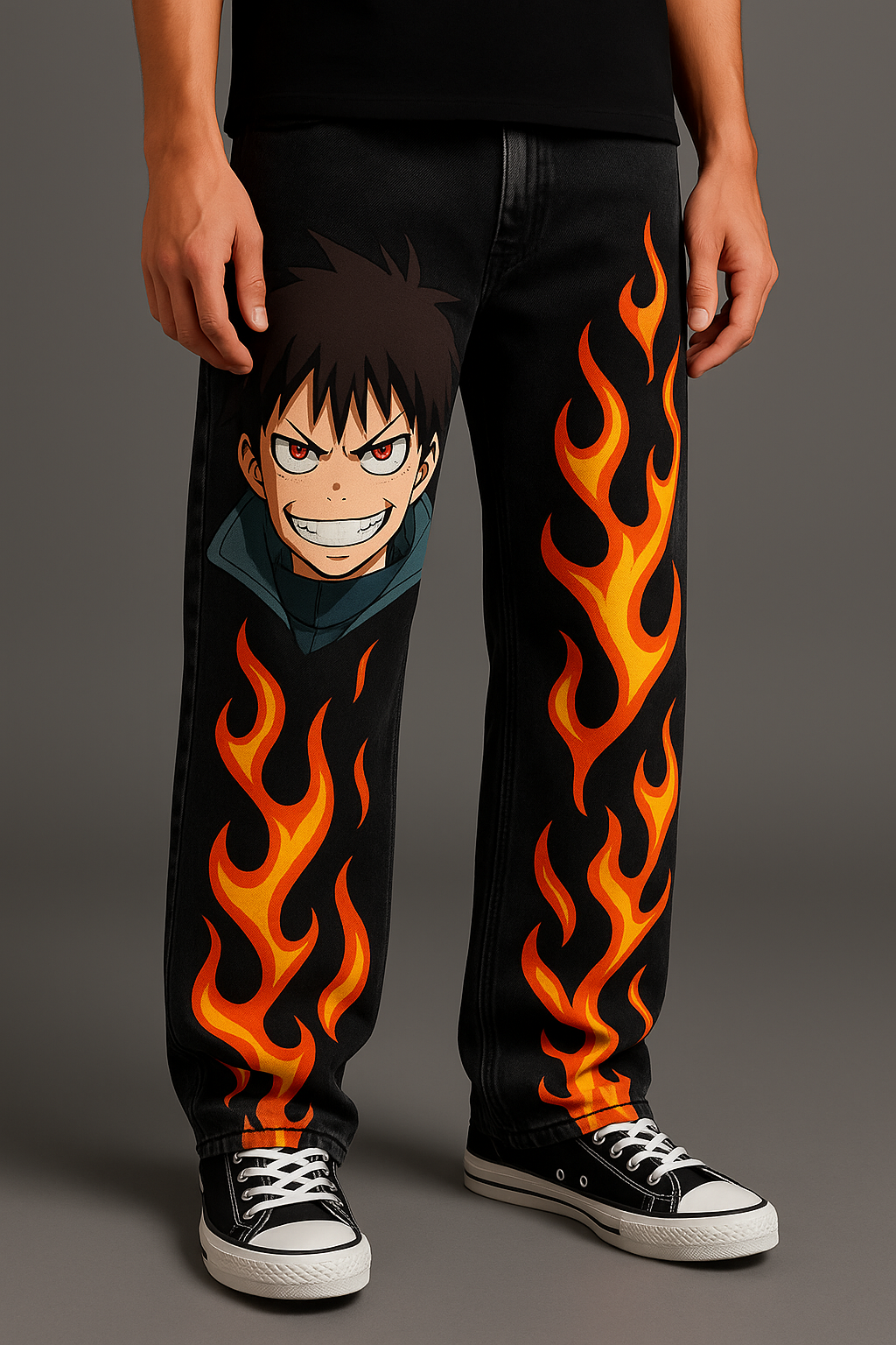 Blazing Fire Devil Baggy Jeans resembling the Fire Devil Shinra